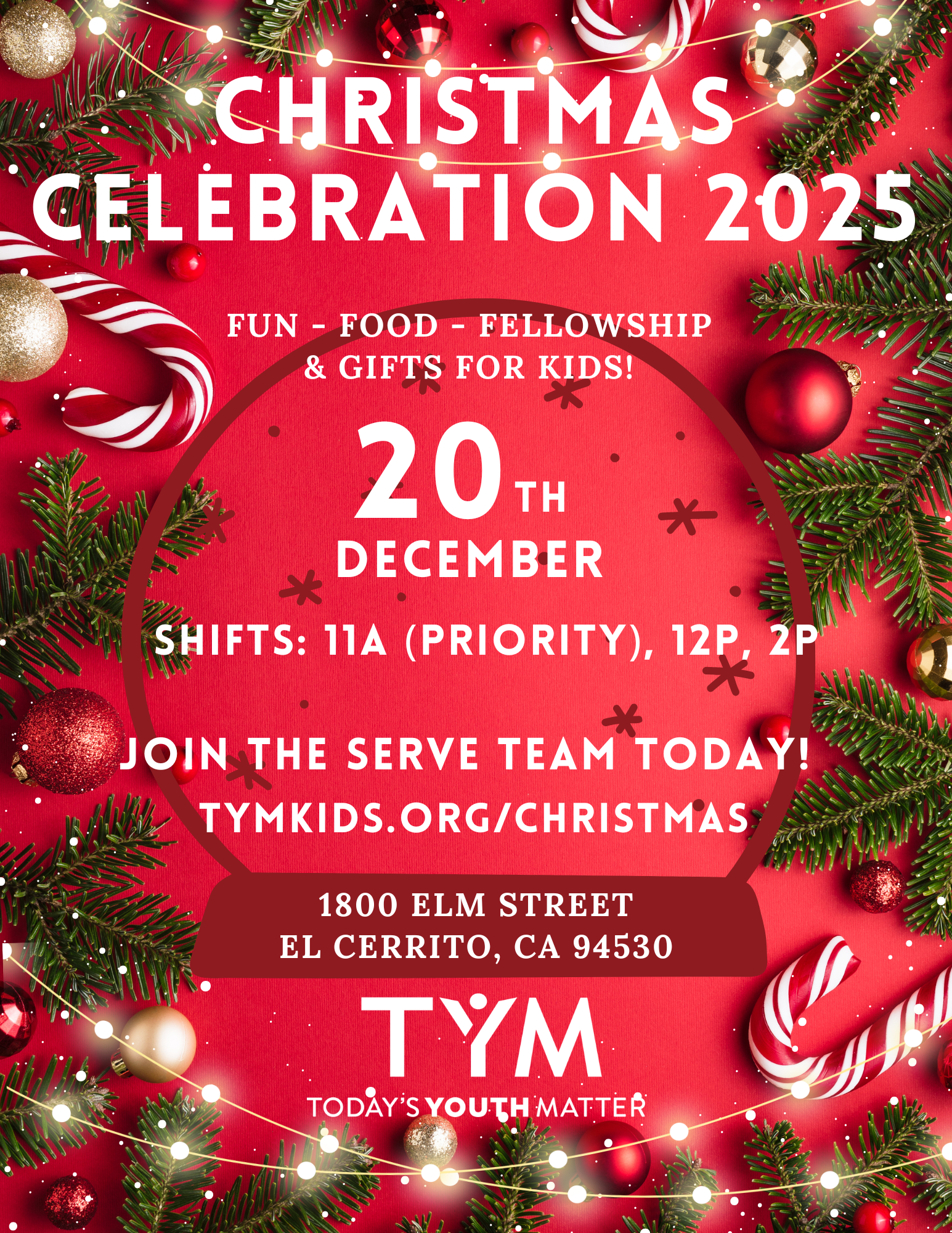 Christmas Celebration - December 20th - JOIN the Service Team (see shifts below) - an amazing day of food, fun, fellowship, sharing the reason for the season (Jesus!), and gifts for all of the kids. Set up, serve the meal, join the elf team in the gift room setup & distribution, and clean up afterwards. Click the link to sign up as a volunteer.